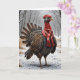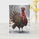 Turquia vestindo um cachecol vermelho de inverno em flocos de neve. O texto é editável.