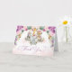 Este adorável cartões de agradecimentos dobrado apresenta ilustração adorável de um grupo de animais da selva, verde tropical exuberante e belíssimas flores de blush e roxo.