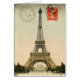 Ilustração da torre Eiffel Vintage e carimbo postal. Da série "Par Avion" de designs viagem.