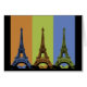 Bonjour! A Torre Eiffel na design Paris Triptych é composta por três painéis verticais cada um com uma cor diferente, um azul-céu profundo, laranja queimado e tons verdes brilhantes. As três Torres Eiffel pretas são exibidas nas cores contrastantes dos painéis de fundo. Celebre a Cidade das Luzes e a Torre Eiffel com a Torre Eiffel em Paris Triptych pop art design.