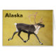 Uma rena, ou rena, superimposta a um fundo de couro curtido pelo cérebro. A leitura de texto "Alaska" também é exibida. A rena (Rangifer tarandus), conhecida como rena fora da América do Norte, é um veado do Ártico e Subártico. Embora em geral disseminados e numerosos, algumas subespécies são raras e uma delas se extinguiu. A palavra Inuit tuktu significa veado que nunca pára de se mexer. Desde o início do Verão, desde que se desloquem para o norte até ao neném, até que se desloquem para o inverno e para o sul. Cariou muito em cor e tamanho. Exclusivamente entre os cervídeos, ambos os gêneros cultivam galhos, embora sejam maiores nos machos e há poucas populações onde as fêmeas não possuem completamente. A caça e pastoreio de renas semimdomesticadas (para carne, couros, galhadas, leite e transporte) nas Caraíbas são importantes para várias pessoas árcticas e subárticas. Mesmo muito fora de seu alcance, a rena/rena é bem conhecida devido ao mito, provavelmente originário do início do século XIX, na qual o trenó de Papai Noel é puxado por renas voadoras, elemento secular popular do Natal. Na Lapónia, a rena puxava o pulso. Distribuição e habitat A rena/rena é uma espécie disseminada e numerosa na Holarcta do norte, presente em tundra e taiga (floresta boreal). Ela foi originalmente encontrada na Escandinávia, Europa Oriental, Rússia, Mongólia, e na China norte a norte da 50ª latitude. Na América do Norte, ela foi encontrada no Canadá, no Alasca (EUA) e nos EUA norte conterminados de Washington para Maine. No século XIX, aparentemente ainda estava presente no sul do Idaho. Também ocorreu naturalmente em Sakhalin, na Gronelândia, e provavelmente mesmo em tempos históricos na Irlanda. Durante o final do Pleistoceno, foram encontradas renas tão ao sul como Nevada e Tennessee na América do Norte e Espanhas na Europa. Hoje, então espécies desapareceram de muitas áreas dentro dessa grande faixa histórica, especialmente das partes do sul, onde desapareceram quase em todo lugar. Ainda existem grandes populações na Noruega, na região de Markku, na Finlândia, Suecia, Sibéria, Groenlândia, Alasca e Canadá. As renas Domesticadas encontram-se sobretudo no norte Fennoscandia e na Rússia, com um efetivo de cerca de 150-170 renas a viver em redor da região do Cairngorms, na Escócia. As últimas renas de tundra selvagens que restam na Europa encontram-se em porções do sul da Noruega. Algumas renas da Noruega foram introduzidas na ilha do Atlântico Sul da Geórgia do Sul no início do século 20. Hoje, ainda há dois manadas distintos prosperando lá, separados permanentemente por geleiras. O número total deles não passa de alguns milhares. A bandeira e o casaco de armas do território contêm uma imagem de rena. Cerca de 4000 renas foram introduzidas no arquipélago subantártico francês das Ilhas Kerguelen. A Islândia Oriental tem um pequeno rebanho de cerca de 2500-3000 animais. O número de carneiros e renas flutuou historicamente, mas muitas manadas estão em declínio em toda a sua área. Este declínio global está ligado às alterações climáticas para os efetivos de nortes, renas migratórias e renas e às perturbações industriais do habitat de renas para manadas sedentárias não migratórias. Peles com pelo varia consideravelmente, tanto individualmente como dependendo da estação e subespécie. As populações de nortes, que normalmente são relativamente pequenas, são mais brancas, enquanto as populações do sul, que normalmente são relativamente grandes, são mais escuras. Isso pode ser visto bem na América do Norte, onde a subespécie mais setentrional, Peary Cariou, é a mais branca e pequena subespécie do continente, enquanto a subespécie mais setentrional, Woodland Cariou, é a mais escura e maior. O casaco tem duas camadas de pelo, um coalete grosseiro e grosseiro e um casaco de cabelos longos, composto por cabelos ocos, cheios de ar. Anéis de renas crescem novamente a cada ano sob uma camada de pelo chamada veludo. Na maioria das populações, ambos os sexos cultivam galhos, que (na variedade escandinava) para os machos velhos cai em dezembro, para os machos jovens na primavera inicial e para as fêmeas no verão. Os cilindros normalmente têm dois grupos separados de pontos, um inferior e outro superior. As renas Domesticadas são de pernas mais curtas e mais pesadas que os seus homólogos selvagens. Há uma variação subespecífica considerável no tamanho das galhadas (por exemplo, preferencialmentes pequenas e espinhosas na subespécie mais setentrional), mas em algumas subespécies as galhadas das renas são a segunda maior de qualquer veado existente, depois do alce, e podem chegar a 39 polegadas (100 cm) de largura e 53 polegadas (135 cm)) em comprimento da viga. Eles têm os maiores traficantes em relação ao tamanho do corpo entre veados.O tamanho de Antler tem um papel significativo no estabelecimento da hierarquia de grupos. Nose e cascos Reindeer tem narizes especializados que apresentam ossos nasais turbinados que aumentam drasticamente a área de superfície dentro das narinas. O ar frio de entrada é aquecido pelo calor corporal do animal antes de entrar nos pulmões, e a água é condensada a partir do ar expirado e capturada antes da expiração do ar do veado, usada para humedecer o ar de entrada seco e possivelmente absorvida pelo sangue através das mucosas. As cascas de renas se adaptam à estação: no verão, quando a tundra é macia e molhada, as pegadas se tornam esponjas e proporcionam tração extra. No inverno, as almofadas encolhem e apertam, expondo a borda do casaco, que corta o gelo e cruza a neve para evitar que escorregue. Isso também permite que escavem (uma atividade conhecida como "cratering") através da neve até sua comida favorita, uma líquen conhecida como musgo de rena. Os joelhos de muitas espécies de renas são adaptados para produzir um som de clique enqua