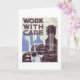 Da coleção vasta de Zazzle de posters dos projetos a administração (WPA) e da guerra de trabalho--uma variedade surpreendente de imagens icónicas projetou promover as artes, o bem-estar público, e o patriotismo--Este cartão comemorativo caracteriza um poster criado por Nathan Sherman, segurança encorajadora no local de trabalho, mostrando a maquinaria, criada em 1937.