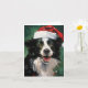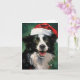 Design de Natal colorido e alegre com um collie da fronteira vestindo um chapéu de Papai Noel.