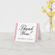 Este tradicional design de cartão de obrigado de saudação apresenta a mensagem "Obrigado!" na parte frontal do texto do script, juntamente com uma mensagem personalizável no dentro. Um cartão de saudação como este poderia ser usado para mostrar apreço a alguém que tenha participado de um casamento, de um funeral, de uma formatura ou de algum outro evento.