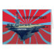 Transportadora de aeronaves contra um cartão temático de fundo vermelho-listrado dinâmico com texto personalizável.