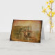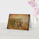 Fotografia de Angelandspot em 2010 com uma textura de pareerica. Um velho trator vermelho se senta em um campo preparando-se para plantar sementes para uma nova época de crescimento. Placa de Saudação de Dentro de vazio Todas as Ocasiões