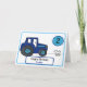 Cartão trator azul e segundo aniversário de cão