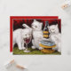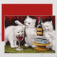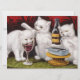 Este design apresenta uma ilustração de Currier e Ives. Ele retrata três gatinhos brancos em pé sobre uma mesa. Um dos gatinhos está bebendo de um copo de vinho do Porto. O outro gatinho abriu uma lata de sardinha e está comendo um peixe alegremente. O gatinho no meio parece estar com ciúmes do gatinho que está bebendo vinho e está agindo de forma agressiva. É uma imagem fofa de gatos de estimação se divertindo em uma festa que foi organizada por seus donos humanos. A obra de arte original foi concluída em 1871.
