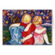 Um desenho colorido de três irmãs que sentam-se junto sob o céu estrelado em Seattle.