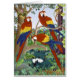 Escarlate dos macaws três em um stting tropical com um macaco e alguns íbis e uma iguana