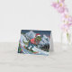 Cartão TRex snowboard na montanha cores psicodélicas