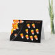 Um cartão fotográfico de Halloween com Kandy Korn em fundo preto.