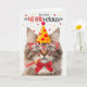 Acessórios de polka amarelos, vermelhos e brancos para um grande rebentamento de aniversário significa que este gato de mesa tricolor está pronto para doer, enviando desejos de aniversário divertidos.