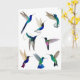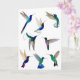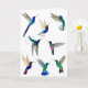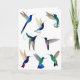 Este cartão apresenta várias espécies de beija-flores tropicais, tais como os beija-flores velvet-roxos, o Starfrontlet com garganta azul, o Jacobin com pescoço branco, o apphire de cauda Ouro, os beija-flores grosseiros e os beija-flores esbranquiçadas. Imagens tiradas de pinturas de aquarela originais por Christiane Dobbins. O dentro é o vazio deixado para a sua própria mensagem manuscrita.