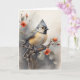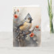 Cartão Tufado Titmouse Descansando em Flores Vermelhas da