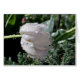 Pesado com precipitação, uma tulipa branca floresce ao sol da manhã. Observe que este cartão pode ser personalizado com sua própria inscrição personalizada.