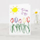 Esboçado pouco jardim das tulipas com um sol amarelo brilhante, para dizer apenas o "pensamento de você"