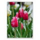 Uma tempestade que passa jaze neve em três tulipas rosa. Observe que este cartão pode ser personalizado com sua própria inscrição pessoal.