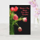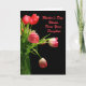 Belo cartão de Dia de as mães com buquê de tulipas cor-de-rosa em preto.