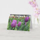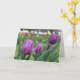 Belo cartão de boas-vindas das tulipas roxas. personalize para ficar bem, aniversários etc..