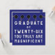 Cartão de formatura exclusivo com design da turma de 26 e rima motivacional. Para personalizar, edite o texto para adicionar o nome do formando.