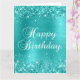 Cartão Turquesa Azul Grande Feliz Aniversário Glittery