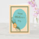 Cartão de Dia de as mães turquesa com um círculo oblongo e flores no lado inferior esquerdo. As cores do cartão são ouro leve e turquesa. Celebre o Dia de as mães desta forma colorida.