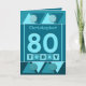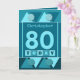 Cartão de cumprimentos de 80. 80 hoje, adicione um nome e escreva o dentro de mensagem. Turquesa e azul com formas e triângulos de boné de garrafa. Feliz aniversário.