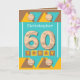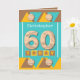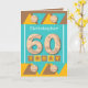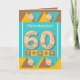 60º cartão de cumprimentos de aniversário. 60 hoje, adicione um nome e escreva o dentro de mensagem. Turquesa e castanho, amarelo com formas e triângulos de boné de garrafa. Feliz aniversário.