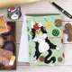 Gato de smoking preto e branco caindo com Enfeites de natal em um pano de fundo verde. Aguente-Se Nessa Estação De Férias.