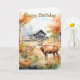 Two deer in mountain landscape with trees and flowers. Suitable for a birthday for anyone