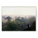 Uma vista maravilhosamente pastoral de manhã cedo, ignorando algumas árvores maravilhosas em um campo de neblina na Inglaterra.
