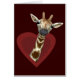 a cor de fundo pode ser alterada! girafa doce e fofinha a saltar de um quadro vermelho escuro do coração
