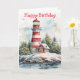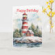 Um farol vermelho e branco no inverno. Adequado para o aniversário de qualquer pessoa