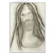 Um esboço preto e branco simples do lápis de um Jesus de vista solene em uma veste