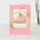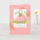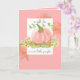 Um presente para um doce cartão de saudação de chá de fraldas de abóbora com uma mão de abóbora rosa macia pintada com aquarela em uma cama de folhas de outono e flores com aglomerados de rosas em fundo cor-de-rosa. No dentro, há mais rosas e a cor rosa cameo com texto que você pode editar para ajustado das suas necessidades.