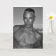 Um homem ajustado, sem camisa, mais velho se apresenta confiantemente para um retrato na praia. Este cartão é para os seus amigos que têm aniversários e estão seguramente a esfregar essas celebrações na sua cara.