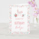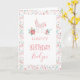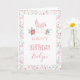 Adorável cartão de aniversário personalizado com uma ilustração de unicórnio rosa.