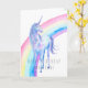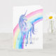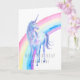 Unicórnio branco roxo com cartão de aniversário personalizado do arco-íris