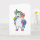 Cartão Unicórnio como Cabeleireiro com Laquê