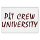 Camisetas para homens, mulheres e crianças. A "Pit Crew University" está disponível em uma variedade de t-shirts, canecas, bonés, botões, adesivos e muito mais para fãs de corrida.