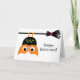 Here's a cute Halloween card! This card's design features an upside down owl on a broom, with the text "Happy Halloween!" to the right side of the owl. This is delightful Halloween greeting card to share with family, friends, and more!!