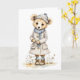 Cartão Urso Adorável com Casaco Chapéu Cachecol Botas Mar
