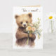 Cartão Urso Castanho Com Buquê Flor