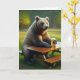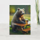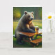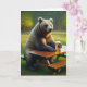 Urso grande sentado numa mesa piquenique com uma caneca de cerveja para Dia de os pais. O texto é editável.