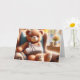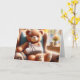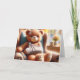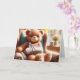 Um ursinho bonitinho sentado numa cadeira com o braço em uma linga para se dar bem logo. O texto pode ser alterado.