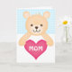 Cartão Urso de ursinho bonito com o coração da mãe (azul)