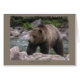 Esta bela obra de arte de um grande urso-pardo no rio foi feita em pastéis pela artista prêmio ganhadora da vida selvagem Kathie Miller.