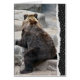 Urso marrom virado para trás em uma rocha com borda rasgada para ficar bem logo.