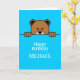 Ótima ilustração cartoon de um urso de orelha, uma maneira divertida de enviar desejos de aniversário para crianças.